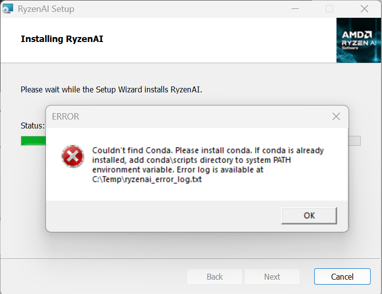 - Ryzen AI 1.3 MSI installer – ok… I guess I need to install Conda so I can complete the install… so the previous steps I performed definitely weren’t for naught…