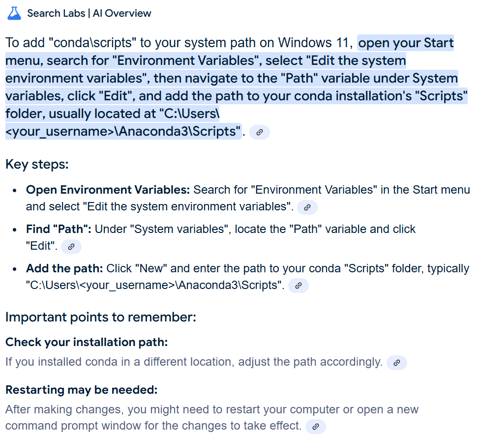 At this point I began the section for installing Ryzen AI Software (ryzen-ai-1.3.1.msi) and it errored out, saying it couldn’t find Conda. Looking back at the dependencies, Anaconda is certainly listed there as a dependency… but then I also saw this: